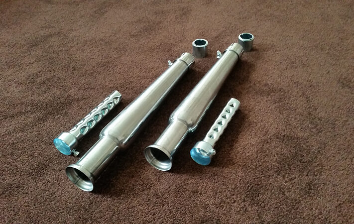 Ein Freund hat mir die Krümmer geschenkt und ich habe dann diese Trumpet Pipes gekauft. Ich habe versucht sie zu verkupfern, das hat mäßig funktioniert, also habe ich sie schwarz gelackt.