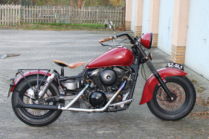 Der originale Auspuff würde natürlich nicht zum angestrebten Look des Bikes passen.